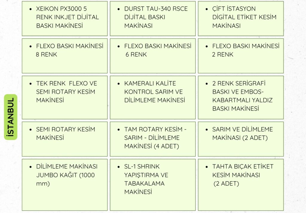 • Tamamlayıcı olarakta; Laminasyon, Katlama, ve Kalite Kontrol Makinaları